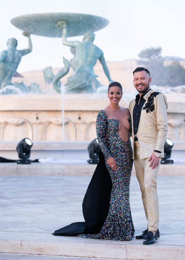 It is quite daring as a dress, very very long, the likes you see on red carpets worn by celebs at the Golden Globes or the Billboard Music Awards in Hollywood – super sparkly and low cut, but when I tried it on, Gaetano the fashion designer and I started screaming in the changing room – Yessssssss! Yessss! OMG Yesss.. and the rest was history. The next time it was seen was on the red carpet to the eyes of thousands of people on Malta’s national TV and the live streams on all internet channels and our instagram feeds of course.