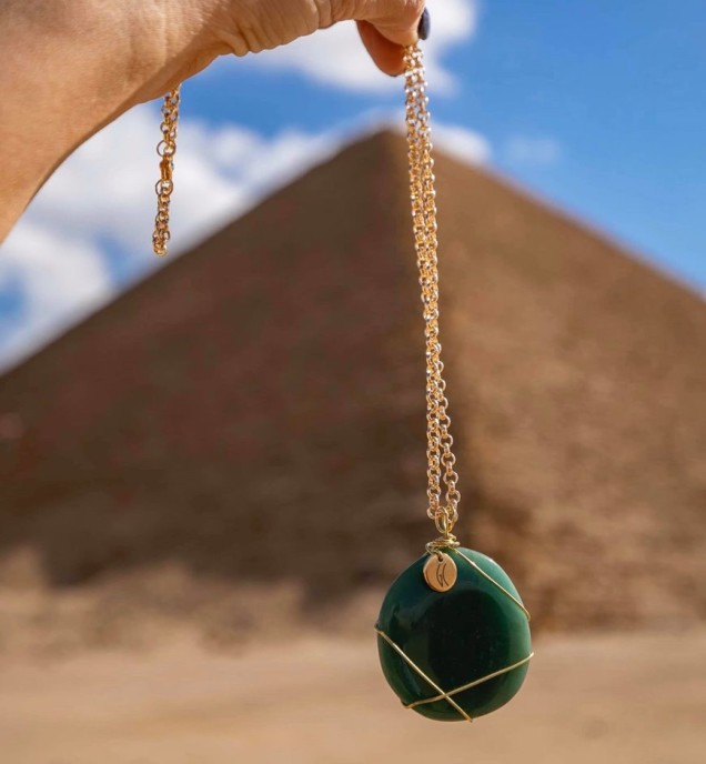 I love to layer various pendants together with different size chains as seen in pic below last month near the largest pyramid of Giza in Egypt where you feel incredible energy from the ground rising through your body when you visit. I love it every time! with Rami’s Insight Tours of course!
