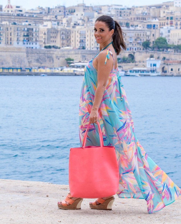Last week, in my blog Step Out Of Your Comfort Zone Ladies, I shared a sophisticated beachwear look and challenged myself to try out a bright yellow lipstick just for the fun of it. This week I bring you another leisurewear outfit and I am wearing a bright orange lipstick this time. Enjoy these snaps from a photo shoot of this beautiful summer dress from Accessorize Malta.