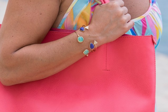 Accessorize have loads of exciting beach bags in bright colours this season to enjoy alongside your other summer pieces. You will find them in colours including yellow, pink and orange. This one was one of my favourites from the current collection, and it matched the dress perfectly. I also picked a few gold bracelets with little stones which are fun for summer. My hair was pulled back in a sleek ponytail, neat and stylish for any summer occasion or beach party.
