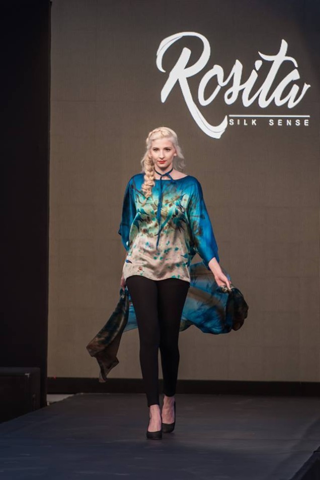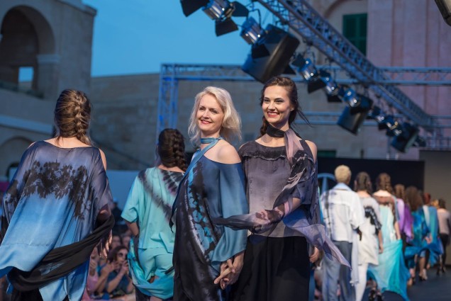The evening began with Rosita’s Fashion Show “Blue Modus Vivendi”. Designer and silk artist Rosita caters for a particular niche, slow and sustainable fashion. Rosita uses natural fabrics like silk, cotton and wool merging her designs with a dazzling fusion of the whole palette of Mediterranean colours all applied by hand, as with the centuries-old art of hand-painted fabric. This beautiful and talented woman Rosita delivers a beautiful and colourful artistic expression that exudes feminine charm using traditional styles like Shibori and Batik and other styles of the Orient.