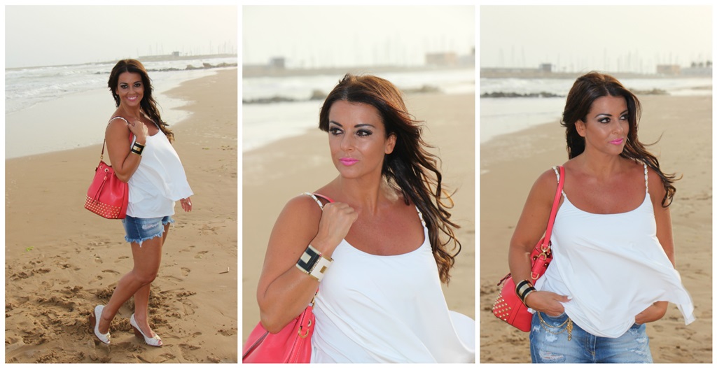 It was here on one of the beachfronts that we captured some photos of this outfit. I wore this on a lovely date night with my husband and my little girl the eve of Father’s Day. I wore this white top by Michael Kors which is very comfortable and elegant at the same time. The denim shorts with the gold jewel embellishments and the statement bracelet are by Elisabetta Franchi. I chose to wear these with my brand new Michael Kors wedges and this gorgeous Michael Kors bucket bag in coral for that colour pop. All these clothing items and accessories are from Rebelli Malta where I always find a wide selection of prestigious brands for all occasions.