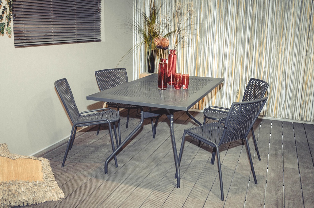 The Suzy collection has an industrial look and it is made of painted metal structure. Both the stool and the chairs have laminated plywood seats, and the chairs also have laminated plywood backrests. Bar stool has height adjustable swivel. They are both available in several possible colour combinations such as Noce Vintage.