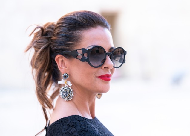 After wearing a white dress for the official opening party on Friday, I opted to wear this little black Mangano dress with a pretty statement tulle trail on Saturday Day 1 of #MFWA2018. It is from the latest collection by Italian brand Mangano. I paired it with these brand new black patent Guess shoes. I accessorised with statement Prada sunnies from Vision Opticians and pretty sparkly chandelier earrings from Porto at Portomaso.