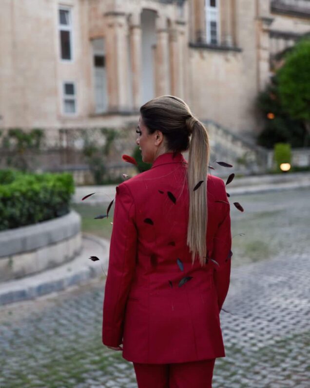 I was lucky to be the first one to enjoy this red suit a couple of weeks after the show! I was invited to another amazing fashion show and I turned up wearing Jean Claude’s beautiful red suit.