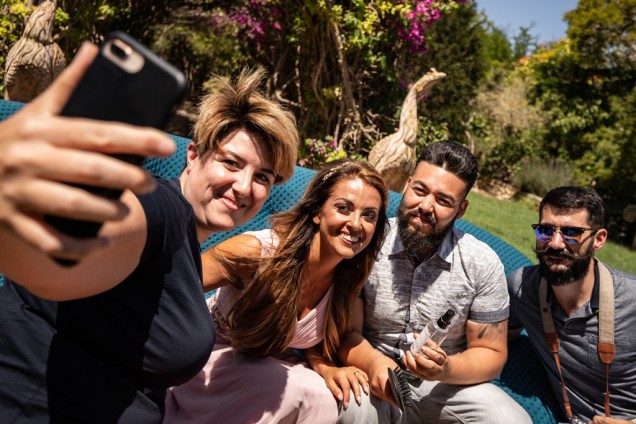 The seat of the large settee, which may accommodate up to 4 persons, has a slightly closed-angle perfect for encouraging sitters to move closer together, which in turn facilitates conversation between the occupants of the settee. In fact, if you scroll down to the end of the blog in the “behind the scenes” shots you will see that 4 of us squeezed nicely for a selfie 😉