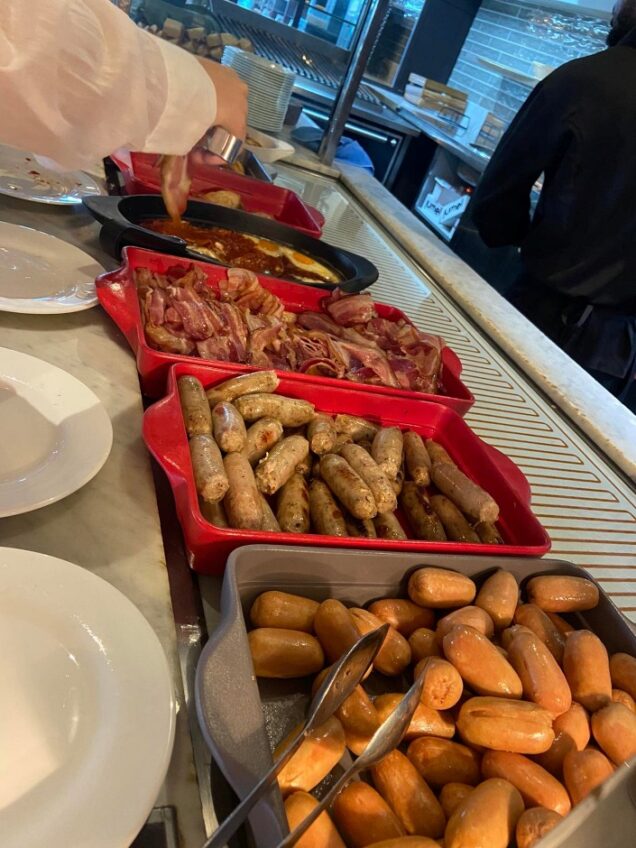 We loved the breakfast options available! There were lots of options for all tastes, from savoury to sweet options, juices, teas and coffees, fruit all buffet style, it s a type of eat as much as you like option, with several waiters clearing and cleaning tables. I loved the olive trees inside the restaurant! It gives the place a relaxing feeling of kind of being outdoors while being indoors.