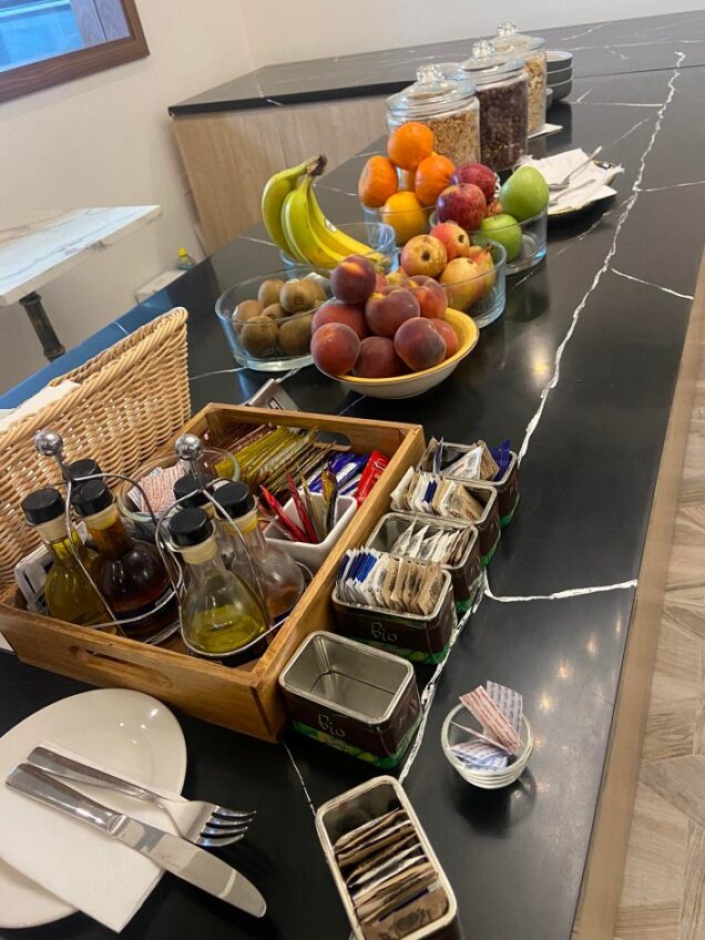 With regards to breakfast, it was a great experience. We were invited to an a la carte type of breakfast. We sat at a table of our choice, listening to soft, classical music. We were offered a choice of drinks, coffees and teas, some fresh croissants and fresh marmalade and we were offered a menu to choose from. The menu included a variety for all tastes including the English full breakfast, Avocado and Egg toast ( my fave), Bacon and Egg, Vegetarian Breakfast ,Omelettes, and much more! It was so filling that we skipped lunch and opted for cocktails by the pool instead!!