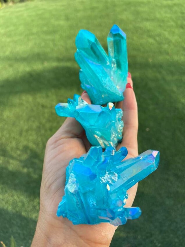 Aura Crystals are created through a technique which electrostatically bonds minerals and precious metals to the surface of real crystal creating a magical aura coloured layer.
