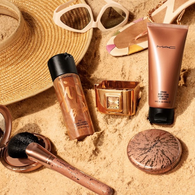 MAC’s beloved Prep + Prime Fix+ gets reimagined in this collection as a shimmer-imparting spray. The Bronzelite shade still sets and refreshes as always, but with a pearlescent bronze aura that finishes any look with a summery vibe. Bronzelite is also the name of the shade that the new Strobe Body Lotion comes in. Its pearly finish is subtle, but its moisturizing power is anything but.